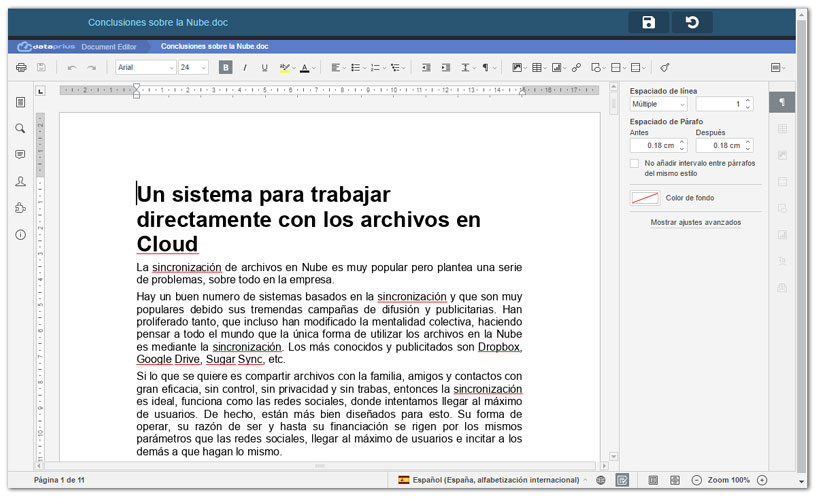La próxima actualización de la aplicación de escritorio incluirá también los editores de Office. De esta forma no será necesario disponer de ninguna suite ofimática para poder trabajar directamente en el PC, con tan solo tener Dataprius instalado ya se cubre la necesidad de edición de archivos. Trabajo directo en la Nube e independiente.